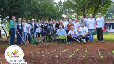 Horta, jardinagem e confraternização no Lar dos Idosos - Em Palmitos, SC, cerca de 30 pessoas participaram de uma ação voluntária na Associação Núcleo de Profissionais Amigos dos Idosos (Nupai). Na entidade, que reúne, hoje 17 idosos, os colaboradores, com apoio dos engenheiros agrônomos, montaram uma horta que será mantida através de acompanhamento semanal por parte da cooperativa. Além disso, parte do grupo auxiliou na jardinagem e pintura de muretas, ao passo que outro grupo, passou momentos de confraternização com os idosos.