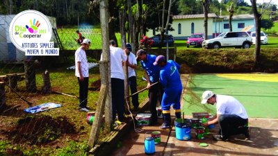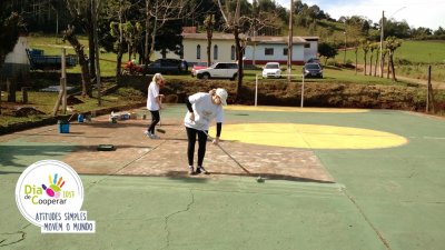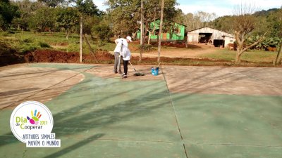 Mutirão à serviço do esporte e bem-estar - Em Vista Gaúcha, RS, a Cooper A1 fez força no mutirão formado por voluntários da Cooper A1, Sicredi e Cooperativa Mista de Vista Gaúcha, que realizaram o projeto de revitalização da Quadra de Esportes da Comunidade Saltinho do Guarita.