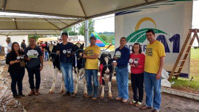 CONCURSO DA BEZERRA: ANIMAIS DE COOPERADOS SÃO DESTAQUES Dentro da AgroCaibi também foi realizado o concurso da bezerra. Vários produtores e cooperados participaram, entre eles, os que tiveram destaque, os cooperados Carlos Demartini e Jandir Demartini. A novilha do sócio Jandir Demartini, da raça holandesa, ficou com o prêmio de grande campeão do concurso. É uma grande satisfação pois, além de produzirem leite para a Cooper A1 / Aurora, ambos usam as rações Nutri A1 para seu rebanho, comprovando sua eficiência”, ressaltou gerente Moacir Titon.