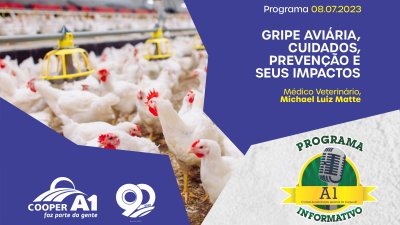 O programa de 8 de julho traz os produtores destaques de aves, suínos e leite do mês de junho de 2022.No Informativo A1 Entrevista, a presença do médico veterinário Michael Luiz Matte que traz informações importantes sobre a gripe aviária, como prevenir a entrada nos aviários e os impactos para a cadeia produtiva.