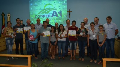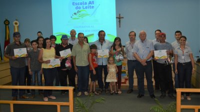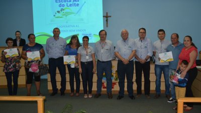 Participaram do programa famílias de Alpestre, Planalto, Pinheirinho do Vale, Redentora, Vicente Dutra e Braga. A médica veterinária e responsável pelo programa Escola A1 do Leire, no Rio Grande do Sul, Jaqueline Gaspary Alves, coordenou e auxiliou os produtores para alcançar o crescimento e desenvolver competências na atividade, como comentou a formanda Lurdes Manica: O programa é um projeto de formação do quadro social, lançado pela Cooperativa A1 em 2015. O projeto chamou os cooperados de bovinocultura de leite para participarem de um curso modular, projeto esse, idealizado e desenvolvido pela equipe técnica da atividade de leite da cooperativa. A turma que concluiu a fase I do programa, é a terceira a se formar no estado. Os produtores que finalizaram o curso participaram de nove módulos, e desenvolveram suas propriedades através das técnicas recebidas pelo Escola A1. Oportunidade de desenvolvimento Jaqueline Alves, é médica veterinária da Cooperativa Central Aurora Alimentos, e atende os cooperados da Cooperativa A1 no Rio Grande do Sul. Para ela, a atividade funciona sim, através da assistência técnica de qualidade, mas também com o empenho e dedicação dos produtores. “Como cooperativa, procuramos fazer com que as pessoas tenham renda em suas propriedades, e temos vários projetos dentro da atividade leiteira para auxiliá-los. A gente pede que vocês não parem por aí, continuem estudando e dando sequência para a atividade”, reforçou o gerente da atividade de leite, Gilnei Caumo. O projeto é uma aposta da Cooper A1 para que seus cooperados possam investir e gerir a propriedade com mais segurança, o estudo proporciona isso. Selvino Giesel, gerente da política leiteira da Aurora, comentou sobre a oportunidade de especialização:  “Na vinda eu escutei uma música que dizia que um produtor é tão doutor quanto um médico, vocês estão dando um passo para administrar a atividade de vocês, se especializando, isso que importa”. Selvino comentou ainda sobre o projeto de melhoramento genético, parceria entre a Cooper A1 e a Aurora. “Fizemos esse investimento, e hoje temos um projeto se desenvolvendo, é o único no Brasil, é algo que a gente faz, e ninguém mais faz pelos seus produtores de leite”. E para finalizar, o presidente da Cooperativa A1, engenheiro agrônomo Elio Casarin comentou sobre a assistência técnica: “Eu valorizo bastante a assistência técnica, nós como cooperativa precisamos desenvolver cada vez mais os nossos agricultores, o objetivo de uma cooperativa é ver crescer e se desenvolver junto dos nossos associados”. Turmas em andamento Além da turma que concluiu o curso, em Santa Catarina mais aproximadamente 60 famílias estão com o Escola A1 do Leite em andamento. São 10 turmas no estado, que cursam as fases I e II do programa, e irão se formar em junho deste ano.