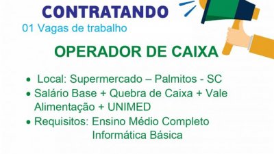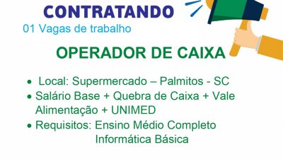 Se liga na vaga de emprego para a unidade de Palmitos ?