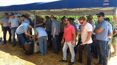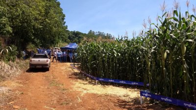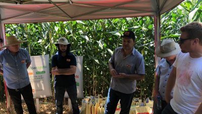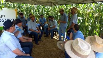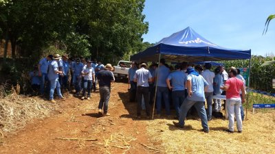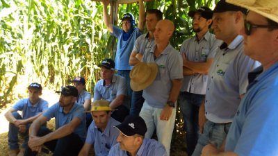Acontece um dia de campo em Palmitos, na propriedade da família Vacarin, para avaliação de cultivares de milho.