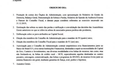 EDITAL DE CONVOCAÇÃO ASSEMBLEIA GERAL ORDINÁRIA