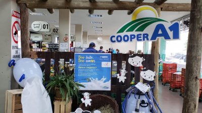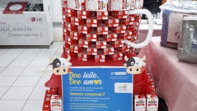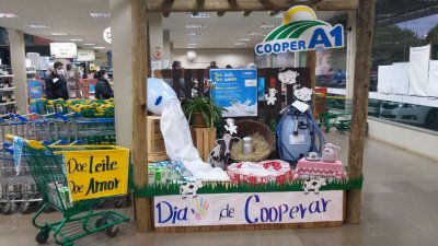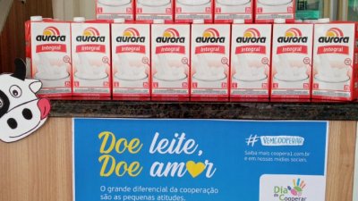 Nos dias 29, 30/06 e 1º/07 e 06, 07, 08/07 somente, haverá uma coparticipação da Cooper A1 e Aurora Alimentos na campanha. Sendo que nestes dias, a cada 12 litros de leite vendidos a 1 cliente, ou seja, uma caixa fechada, as cooperativas acima, doarão 1 litro de leite para a ação. As unidades, deverão fazer o controle da doação.