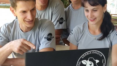 “ - Eu saí de casa com 13 anos para cursar o ensino técnico em agropecuária, rumando de Palmitos (extremo oeste de SC) para Camboriú (litoral catarinense) pensando em ter uma base de estudos para administrar a propriedade, mas ao me formar, vi que eu ainda tinha muito a conhecer e estudar para ter a experiência necessária para administrar uma propriedade. Em um dos meus estágios extracurriculares no curso de agronomia, acompanhei o dia-a-dia de uma propriedade referência na produção de leite em Santa Catarina, foi quando fortaleci o sonho da sucessão familiar. Porém, mesmo com esse sonho eu quis conhecer um pouco melhor a produção agrícola no Brasil e segui para o ramo de produção de sementes de milho, trabalhando em uma multinacional neste ramo, até que meu pai, tendo dificuldades em conseguir mão-de-obra, pensou em vender as vacas leiteiras e investir apenas em gado nelore. Foi então que eu e minha noiva Simone voltamos para casa para dar continuidade e ampliar a atividade leiteira.” Comenta o Técnico agrícola e Engº Agrônomo Jhonatan Orsolin.”