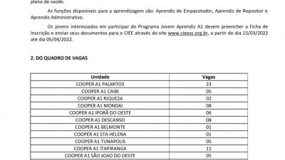 Edital Jovem Aprendiz SC 2022