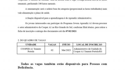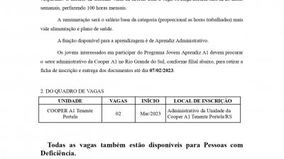 EDITAL JOVEM APRENDIZ TENENTE PORTELA/RS