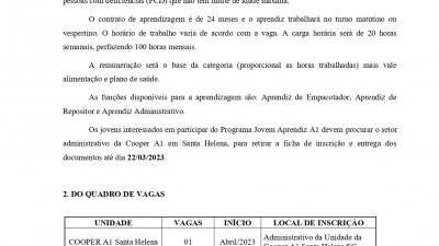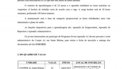 EDITAL: Jovem Aprendiz Santa Helena/SC