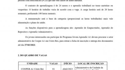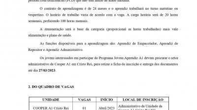 EDITAL: Jovem Aprendiz Cristo Rei/SC
