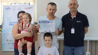Nesta sexta-feira (22) em Planalto (RS), 14 famílias concluíram o programa “QT Rural”, oferecido pela Cooper A1 e Aurora Coop. A formação ocorreu na câmara de vereadores do município, e contou com a presença do coordenador do Encadeamento Produtivo da Aurora Coop, Joel José Pinto; o Gerente da Unidade Maicon Rigon; o coordenador dos programas de qualidade na Cooper A1, Carlos Gadonski, e o instrutor do Sebrae, Jovani Becker, que auxiliou as famílias.
