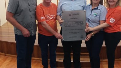 Presentes no evento, o presidente da Cooper A1, Elio Casarin; a gerente da unidade, Elisiane Tavares; o presidente da Câmara, Gelson Petry; o prefeito, Alexandre Gomes Ribas; a vereadora que propôs a homenagem, Ilda Teixeira Feller; vereadores da casa; equipe técnica das atividade de suínos, leite e grãos; cooperados e colaboradores.