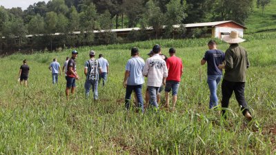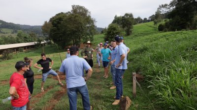 Na sexta-feira (15) foi realizado na propriedade dos cooperados Rafael e Marcia Lohmann, de Linha São Domingos, interior de Palmitos, uma tarde de campo sobre Pastagens Permanentes. O momento reuniu cooperados e técnicos de Palmitos, Caibi e Mondaí, o representante da Epagri de Palmitos Ruan Matheus Benvenutti e a coordenadora da atividade do leite, SC, Graziela Gloger.